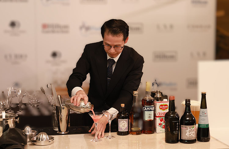 ホテルのバーテンダーがカクテルの作り方を伝授します。チームでカクテルづくりを楽しみながら競います。