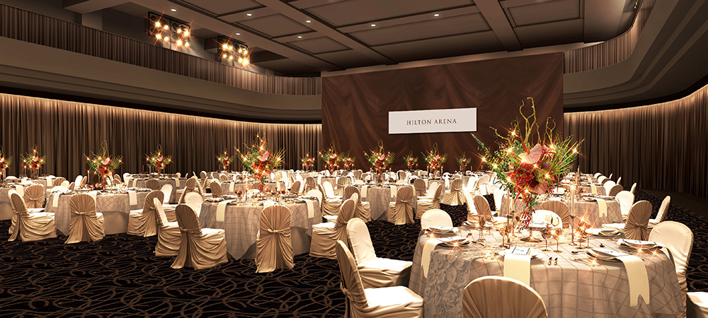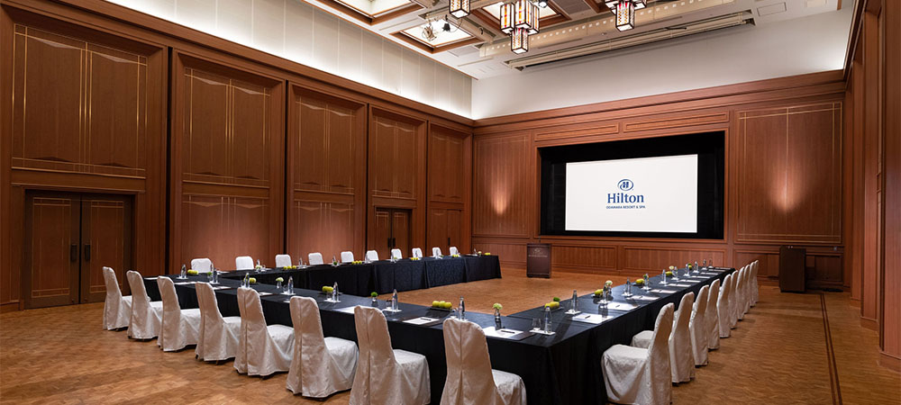 最大1,000名様まで収容可能なヒルトン・アリーナやオーシャンビューの会議室、最大60名様までご利用いただける和室宴会場もご用意しています。