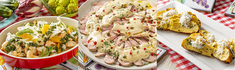 - サスティナブルシュリンプ、フェンネル、オレンジのサラダ サルサヴェルデ または シラスと彩り野菜のフリッタータ(日替わり)