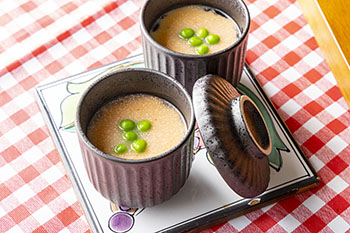 - ひじきとグリーンピースの茶碗蒸し明太子の餡