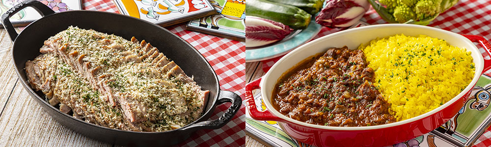 - 豚肩ロース肉のロースト ポルケッタ風 または サルシッチャ、卵、モッツアレラチーズのオーブン焼き(日替わり)