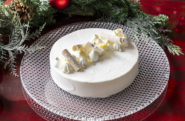 ふんわりとしたメレンゲとホワイトチョコ、そしてシュガーパウダーの粉雪で仕上げた純白のレアチーズケーキ。中にはパッションフルーツとオレンジのジュレを忍ばせ、爽やかな酸味が広がる雪の天使のようなスイーツ。