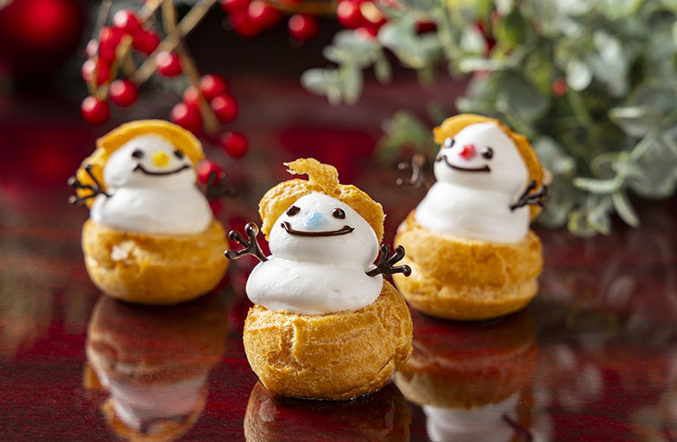 ふわっと軽いクリームをまとった雪だるまのシュークリーム。表情や鼻の色がひとつひとつ違う遊び心あふれるデザインで、あなただけのお気に入りを見つけてみては?
