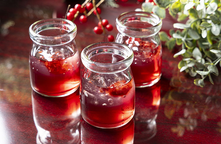 赤ワインにスパイスと柑橘を合わせ、香り高いゼリーにアレンジ。口に広がる深みと温かみが、冬の夜にぴったりな大人のデザート。