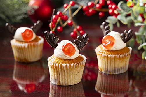 林檎の甘みとキャラメルのコクが広がる、トナカイ型の愛らしいマフィン。チェリーの赤がアクセントになった、見て楽しい、食べて嬉しいクリスマススイーツ。