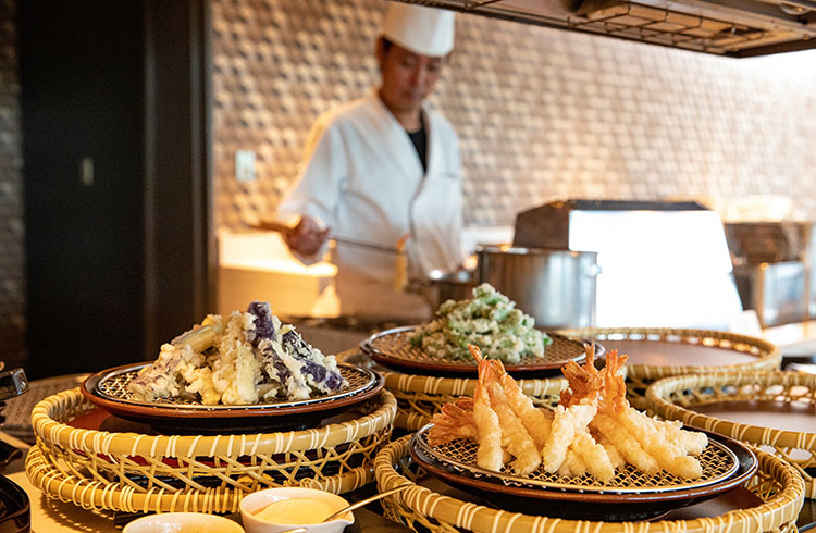 - 天ぷら、ローストビーフなどの季節メニューを目の前で調理・提供。