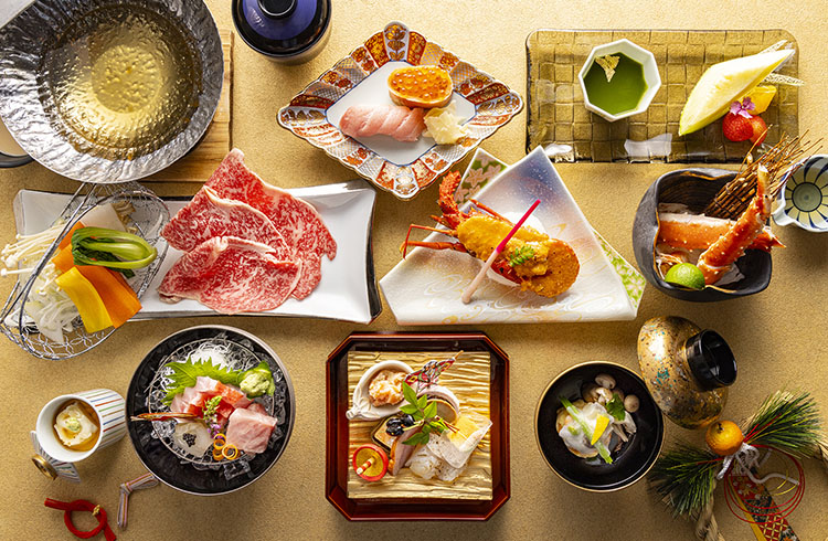 年末年始の特別なシーンにふさわしい、豪華なコースディナーを最上階の特別会場にてご用意いたします。フレンチコースまたは和食会席の2種類からお選びいただけます。