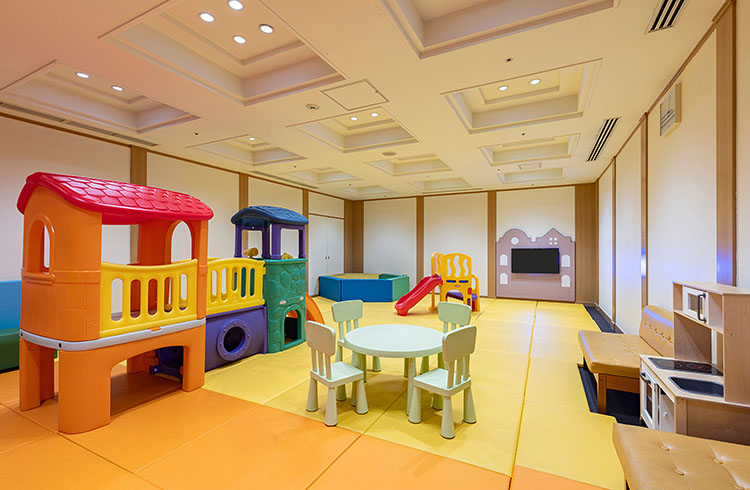 ご宿泊のお客様は無料でご利用いただけるキッズルーム。小さなお子様ものびのびと遊べる充実のスペースで、屋内にあるため天候を気にせずお楽しみいただけます。
