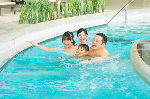 猛暑でも快適に過ごせる温水屋内プール「バーデゾーン」で、家族みんなが笑顔になるひとときを。